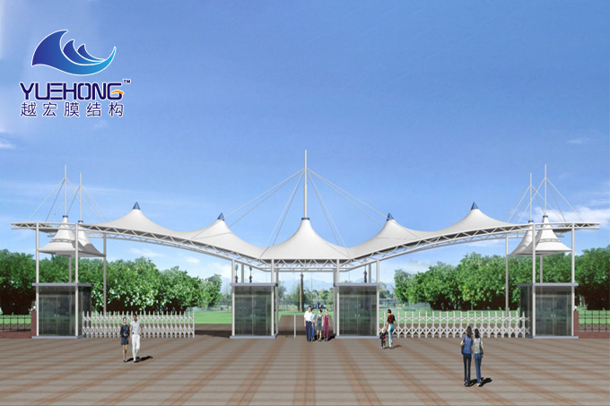 廣州膜結(jié)構(gòu)廠家門口廊道設(shè)施服務(wù)范圍:學(xué)校門口、工廠門口、公司門口、各種建筑樓門口等等。已成為人們視覺最先接觸的部分,還應(yīng)具有了很強(qiáng)的標(biāo)識性。并且能體現(xiàn)出建筑入口的個性以及屬是屋頂經(jīng)常采用的形式。