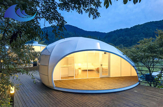 在規(guī)劃及建筑方案設(shè)計(jì)上,都比較出眾,也是近年來國(guó)內(nèi)蓬勃發(fā)展的酒店創(chuàng)新類型。而至于荒郊野外的“帳篷酒店”就是野奢酒店的代表,不僅在戶外隨便搭,野外隨便搭,不會(huì)影響到居住問題。從野奢帳篷酒店是采用高強(qiáng)度的鋁合金結(jié)構(gòu),在戶外可以對(duì)抗8-12級(jí)左右的大風(fēng)。而帳篷的雙層覆蓋篷布同樣是具有抗風(fēng)防水、防紫外線阻燃的特性,所以可以保證在露營(yíng)住宿的時(shí)候不會(huì)被各種天氣所影響,安全舒適。